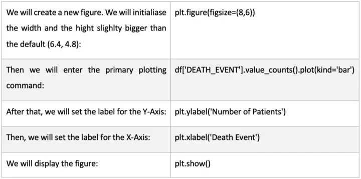 为了可视化有多少患者幸存下来以及有多少患者死亡,我们将使用条形图,其中每个条形代表一个变量的单个离散值,条形的高度等于数据点的数量。