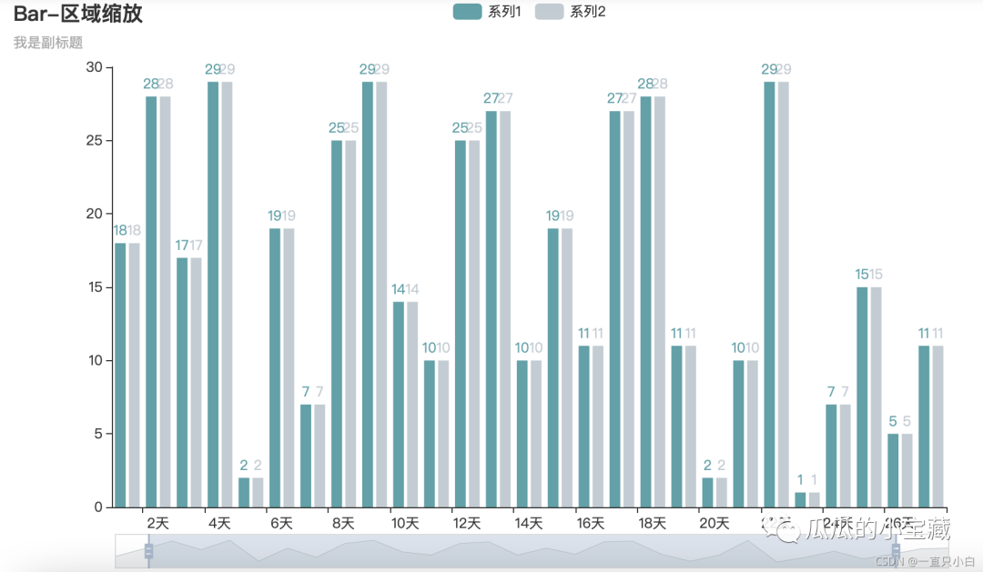 .set_global_opts(title_opts=opts.TitleOpts(title="Bar-区域缩放", subtitle="我是副标题"),#title_opts标题