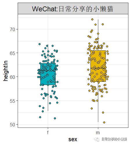 ggplot(heightweight, aes(sex , heightIn , fill = sex)) +