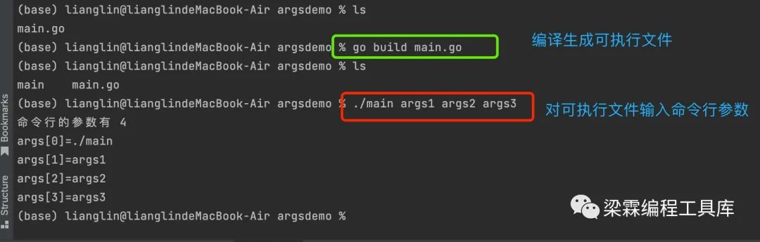 package mainimport ("fmt""os")func main() {fmt.Println("命令行的参数有", len(os.Args))//遍历os.Args切片,就可以得到所有的命令行输入参数值for i, v := range os.Args {fmt.Printf("args[%v]=%v\n", i, v)}}