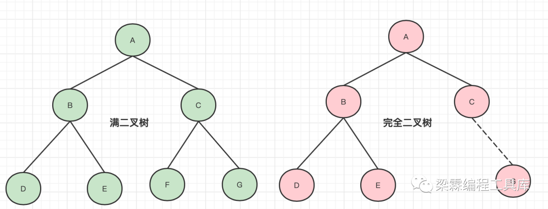 完全二叉树:从上到下,从左到右紧密的排布,不跳跃任何一个位置的二叉树就是完全二叉,比如下图中去掉G节点的右边的树就是一颗完全二叉树,满二叉树是一种特殊的完全二叉树。