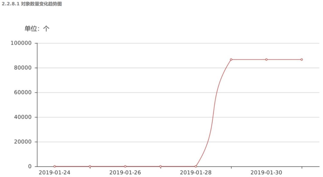 从数据库对象变化趋势图中还能明确知道对象的变化趋势,如2019年1月28日,某客户的数据库创建了大量对象: