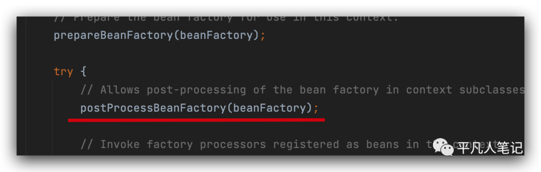 目前已经把bean对象转换成了bean definition了,下一步该调用beanFactoryPostProcessor进行增强处理,