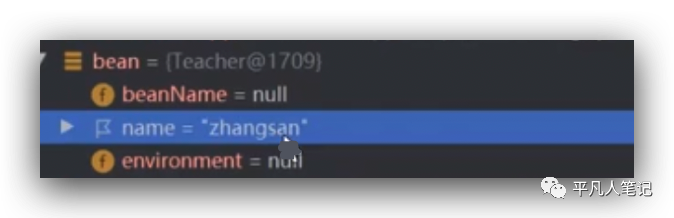 执行完之后,name完成了属性填充,但beanName不会填充,因为beanName是aware接口,现在还没有执行Aware接口的实现类,