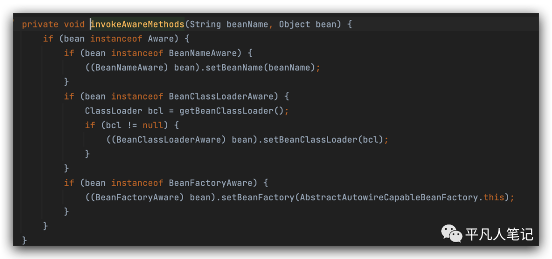 因为在prepareBeanFactory方法中对这个Aware接口进行了忽略,