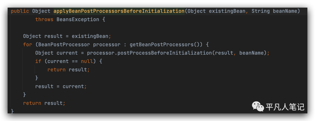 因为当前集合里面只有一个对象,所以此时循环就结束了,当前这个bean完成了实例化且初始化。
