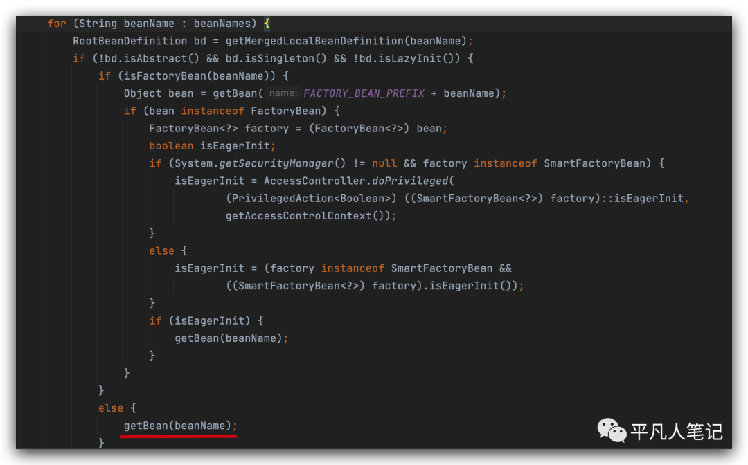 finishBeanFactoryInitialization.preInstantiateSingletons该方法是实例化剩下的单例对象,终于要开始实例化了。