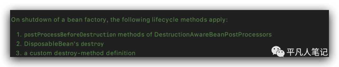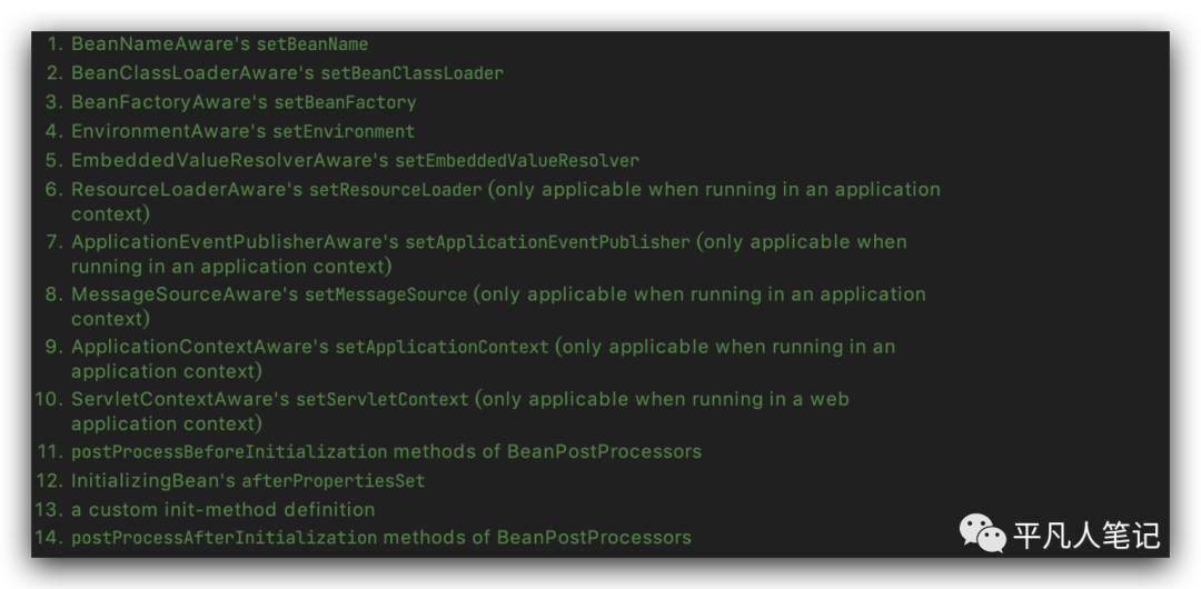 BeanFactory工厂的实现类应该支持标准的bean的生命周期接口,完整的初始化方法和标准顺序是: