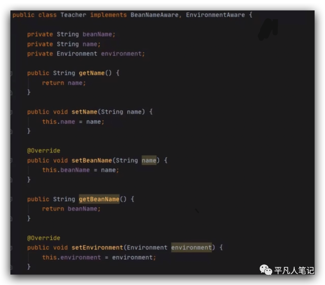 接下来执行Aware接口实现的方法,就是为了设置某些具体的属性值,