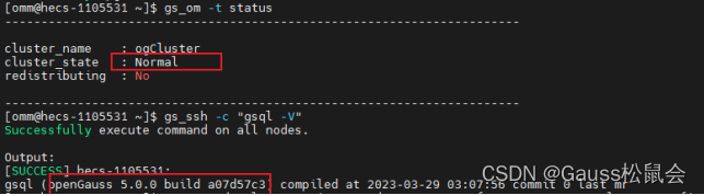 4.以数据库用户(如omm)登录节点,确认数据库状态Normal。
