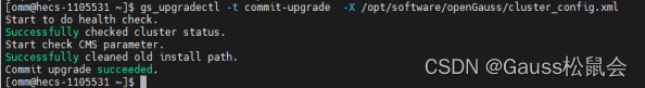 gs_upgradectl -t commit-upgrade -X /opt/software/openGauss/cluster_config.xml