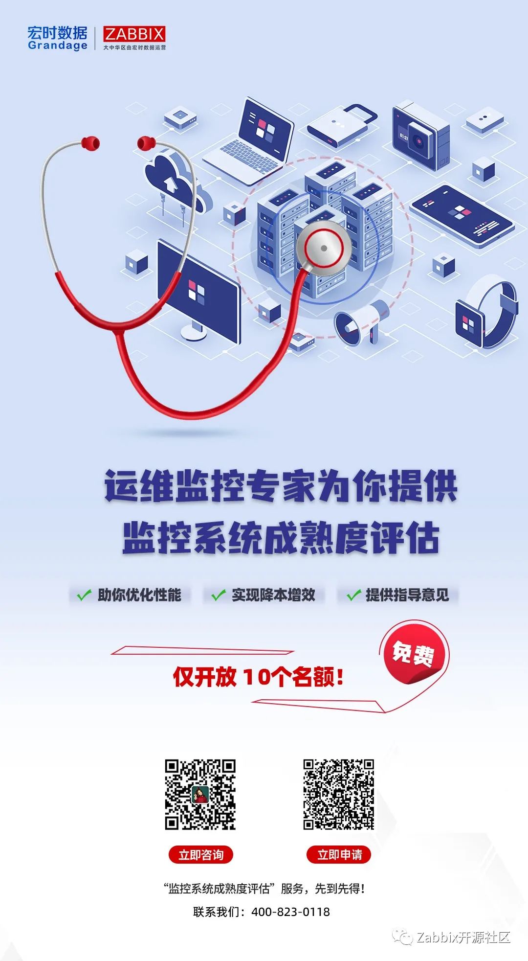 现在给你的监控体统来一次免费体检,由行业指导单位、行业标杆用户、监控运维先驱、监控工具专家,与你专场交流。