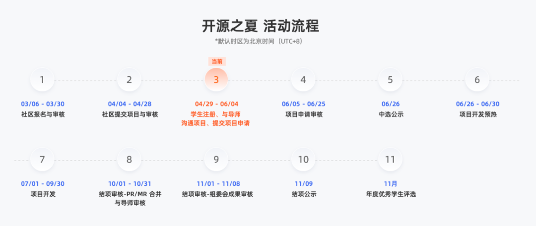 目前正处于学生注册、沟通导师、提交项目申请环节。