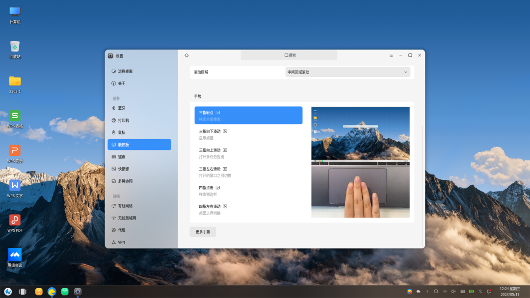 • 触摸屏、触摸板支持自定义设置和触摸校准,内置手势视频展示教程视频,一看就会。