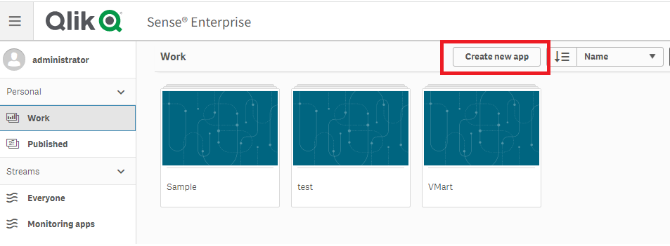 2.3.1 在 Qlik Sense Hub 中选择“Create new app(创建新应用)”