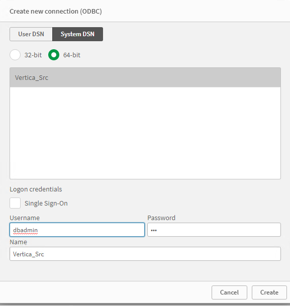 2.2.3 基于“Vertica 与 Qlik Sense 集成指引:连接指南”创建并配置 DSN