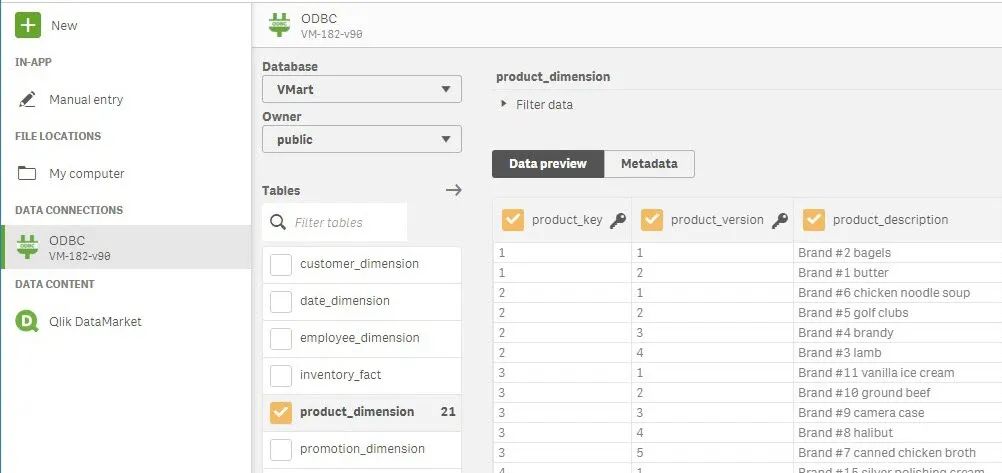 如果以上均能显示,那么您已经成功实现 Qlik Sense 与 Vertica 的连接。现在,您可以开始探索新的功能了。