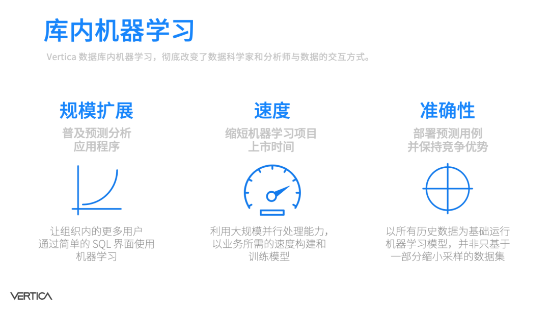 战略性提出“数据库内机器学习”的 Vertica,无疑为尚未部署 ML 或正苦于 ML 项目预算的公司打开了新世界的大门。其内置超过 700 个即开即用的 ML 算法,配合超快查询与大规模工作的超强负载力,将为观望期/困顿期的各大公司注入强心剂。