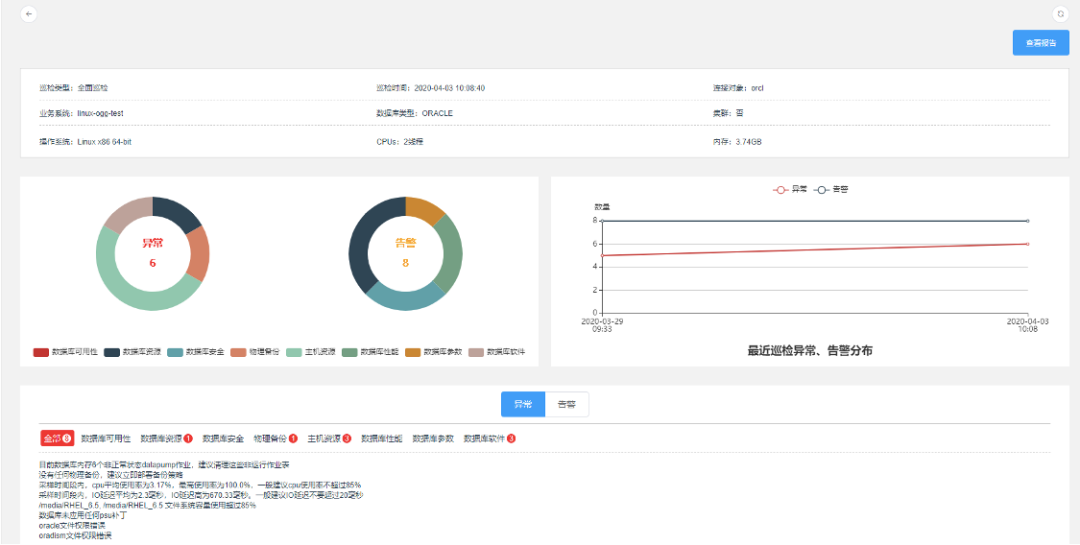 ◆ 提供AWR报告自动采集、归档和自动解读。