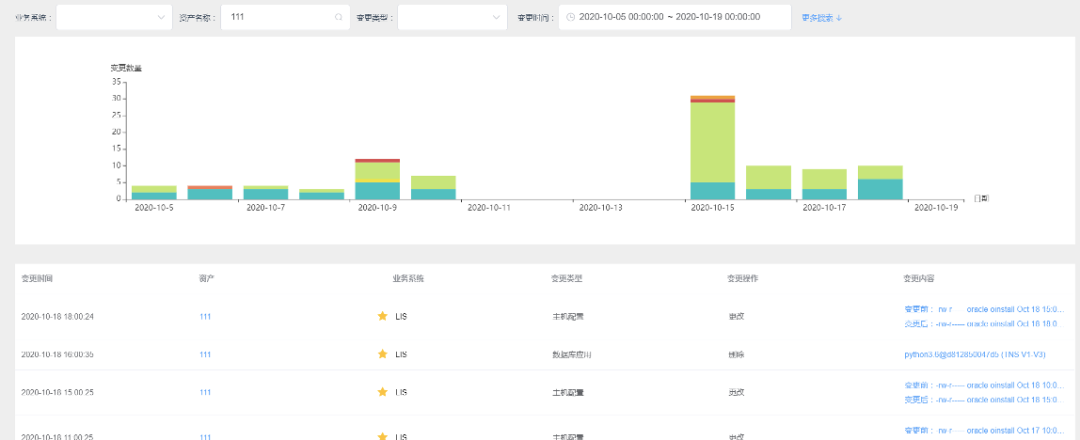 ◆ 提供变更追溯,追溯对象包括:主机配置、主机资源、数据库用户、数据库应用、数据库空间、数据库对象、数据库配置。