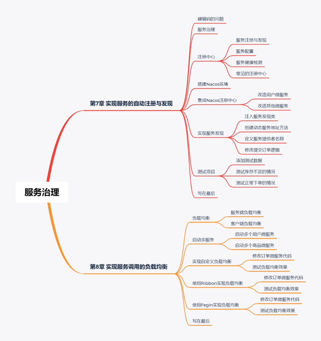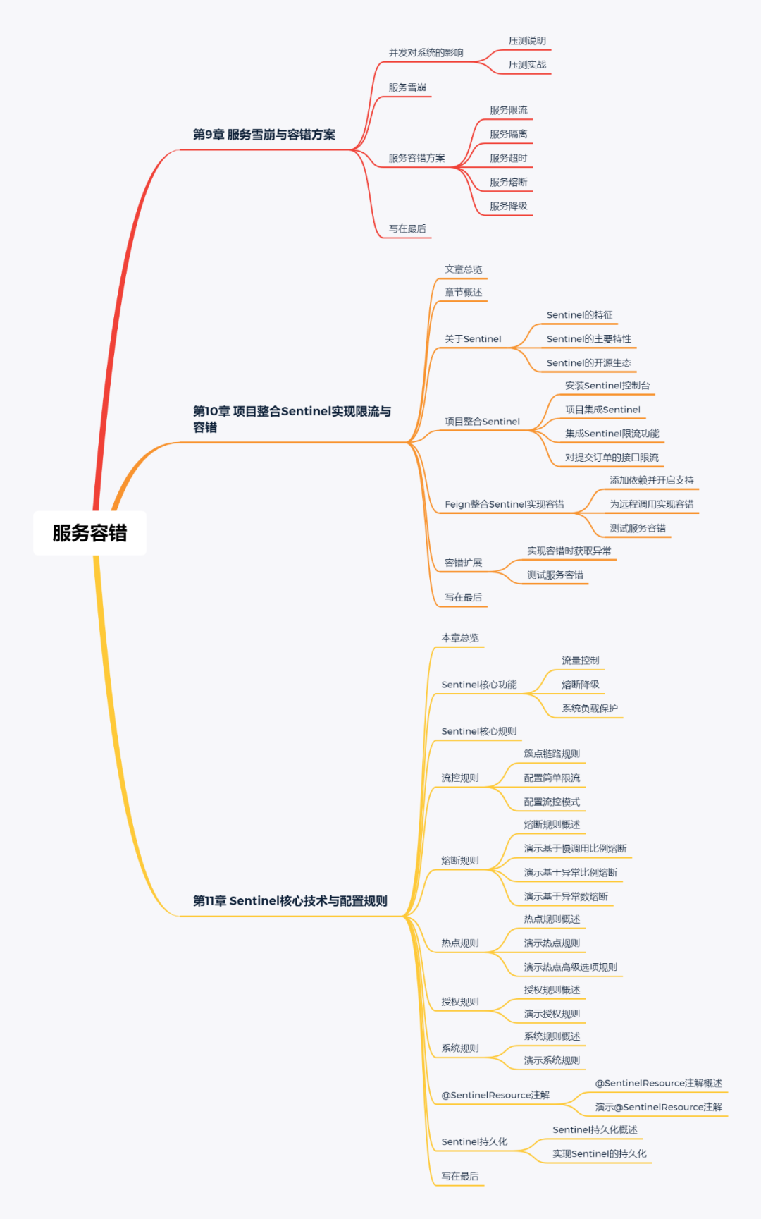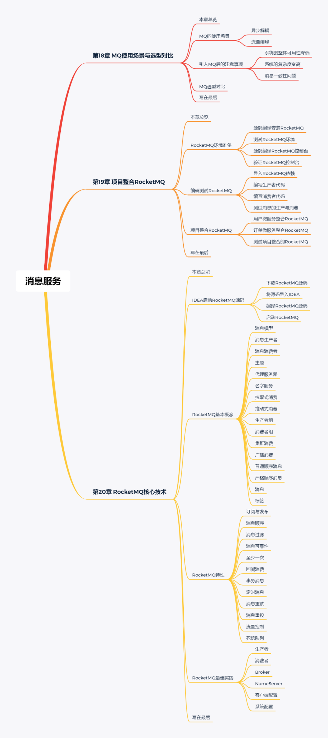 专栏总体上分为十个大的篇章,分别为:专栏设计,微服务介绍,微服务环境搭建,服务治理,服务容错,服务网关,链路追踪,消息服务,服务配置,分布式事务。如下所示。