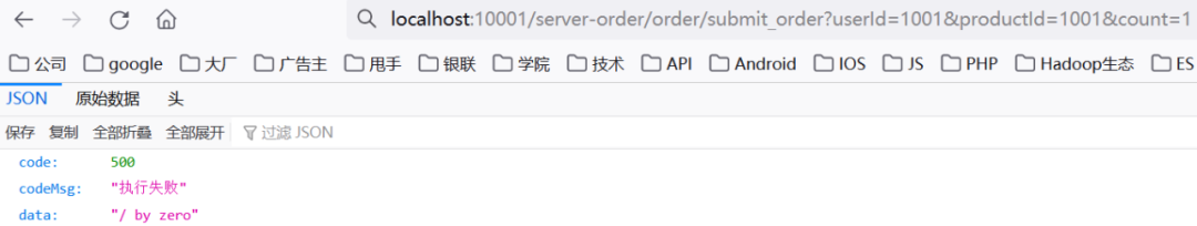 {"code":500,"codeMsg":"执行失败","data":"/ by zero"}