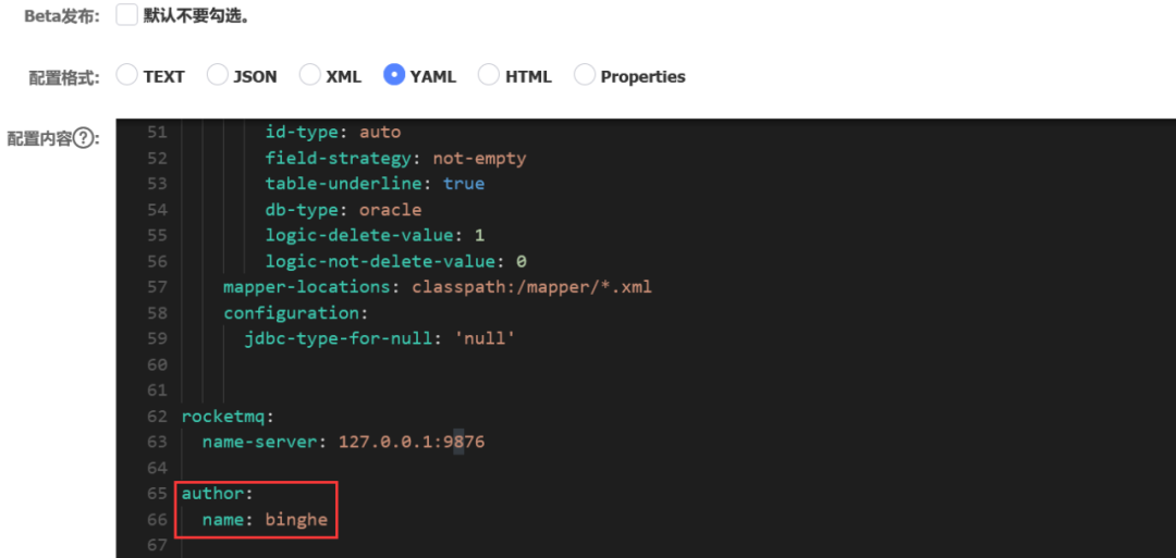 (3)修改Nacos中server-user-dev.yaml的配置,将author.name