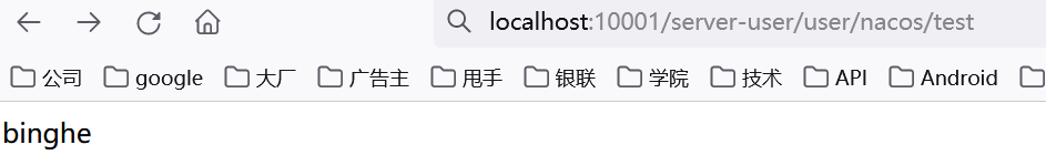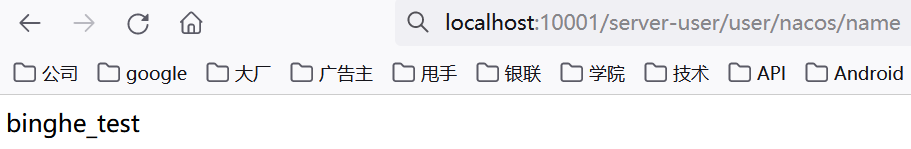 (2)启动用户微服务和网关服务,并在浏览器中输入http://localhost:10001/server-user/user/nacos/test