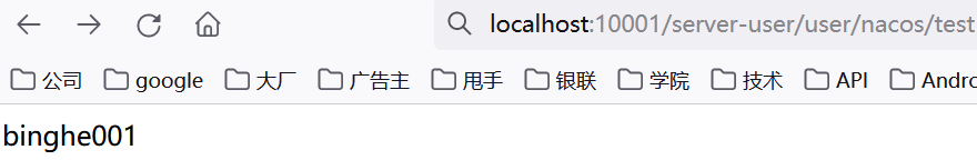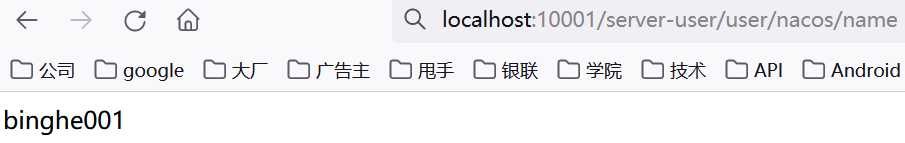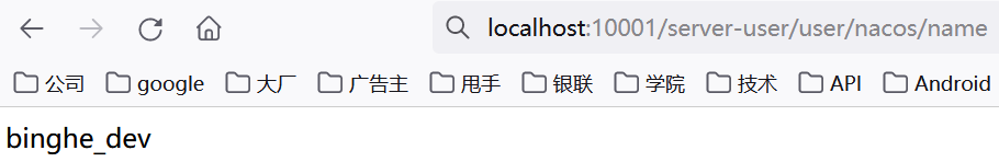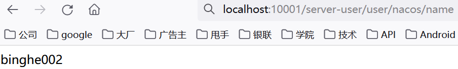 (8)重启用户微服务,在浏览器中输入http://localhost:10001/server-user/user/nacos/name