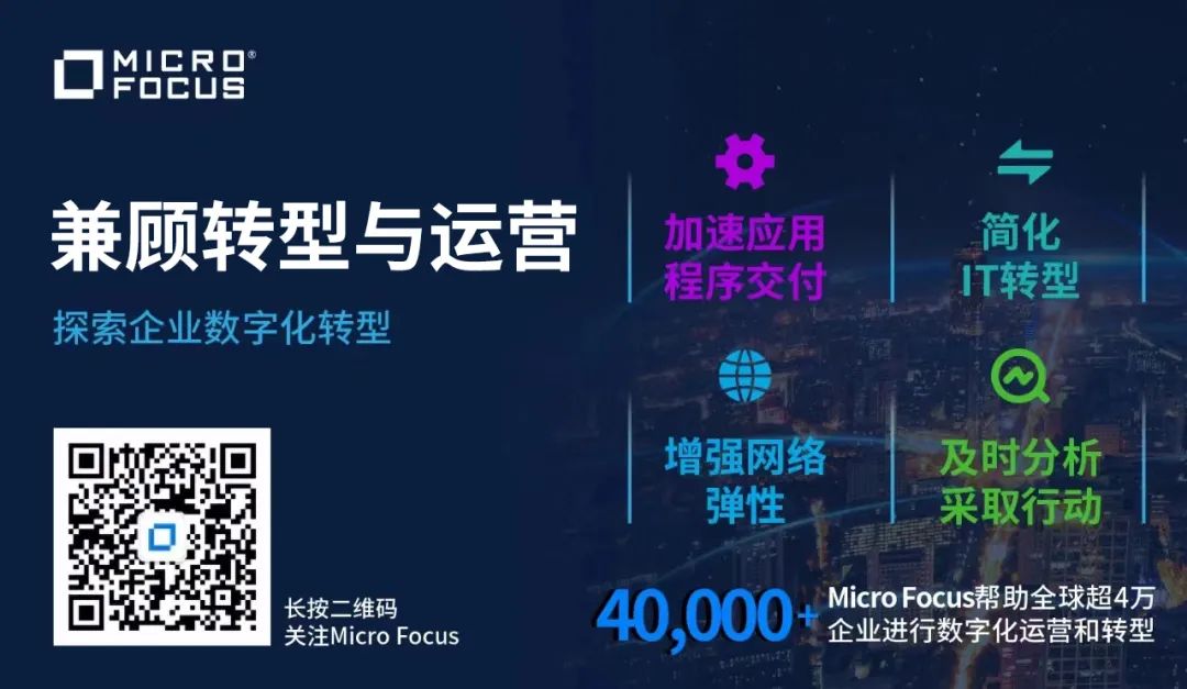 Micro Focus 成立于 1976 年,总部位于英国,作为企业软件提供商,年度收入达 30 亿美元,12000 多名员工遍布 48 个国家及地区。全球拥有 7500 个合作伙伴,40000 多家客户,其中 98 位客户荣登《财富 100》。Micro Focus 提供 300 多种企业级产品。