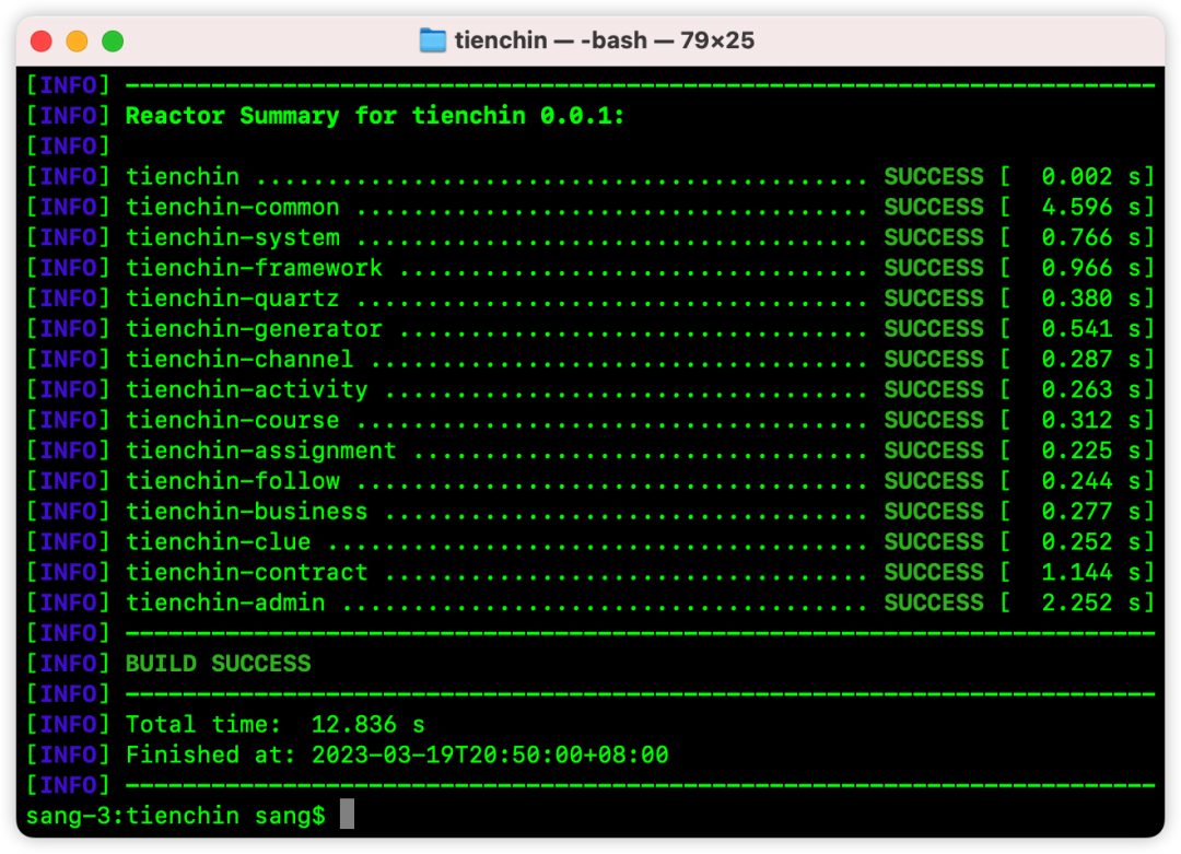 服务端打包我们就进入到 tienchin 目录下,然后执行如下代码即可: