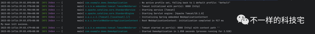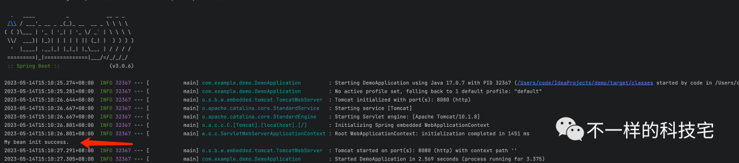 通过观察启动结果,可以看到 myBean 在启动的时候被初始化了。