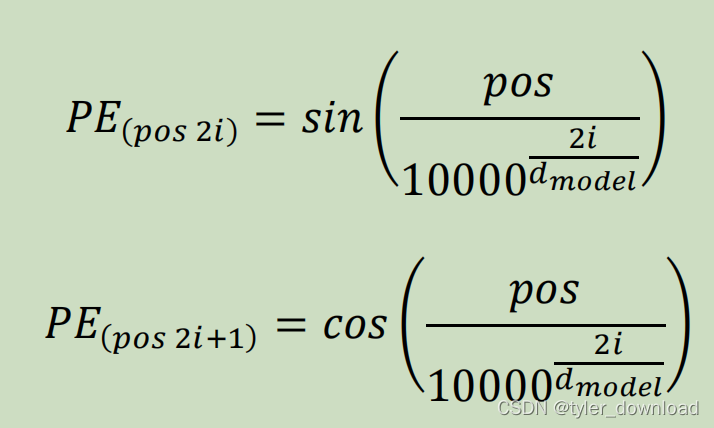 这个positional encoding 本质就是对单词在句子中的距离进行编码,这里位置的编码结果也是一维向量,而且向量的长度跟单词对应向量要一致,因为他们要进行加法运算后,其结果才能输入给chatgpt进行下一步处理,那么chatgpt是怎么去”编码“单词位置的呢,它用了如下方式进行计算: