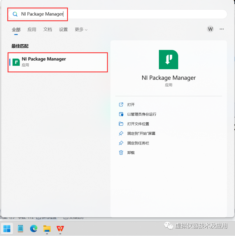 (1)在桌面的“开始”菜单搜索“NI Package Manager”并打开;