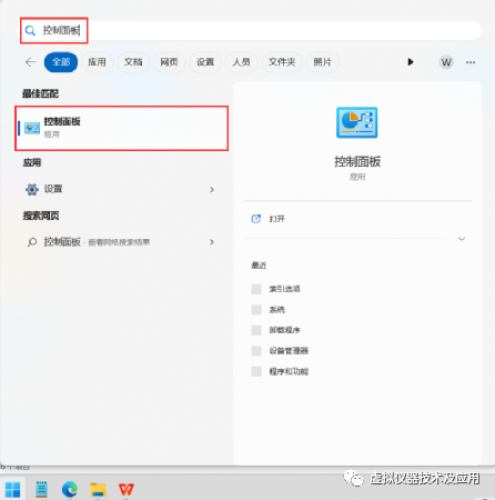 ①在桌面的“开始”菜单搜索“控制面板”并打开;