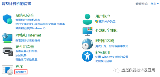 ②在打开的“控制面板”窗体中选择“卸载程序”;