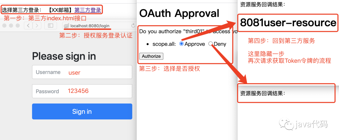 通过上述测试流程,对比常见的第三方登录机制,理解OAuth2的授权码模式。