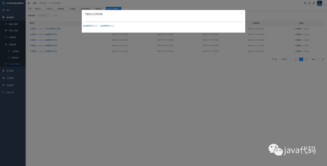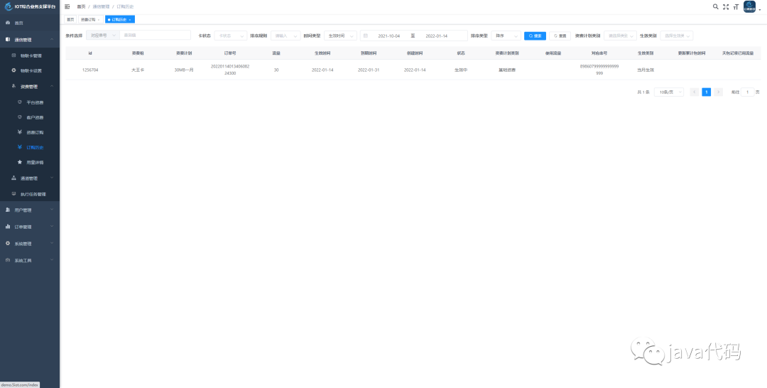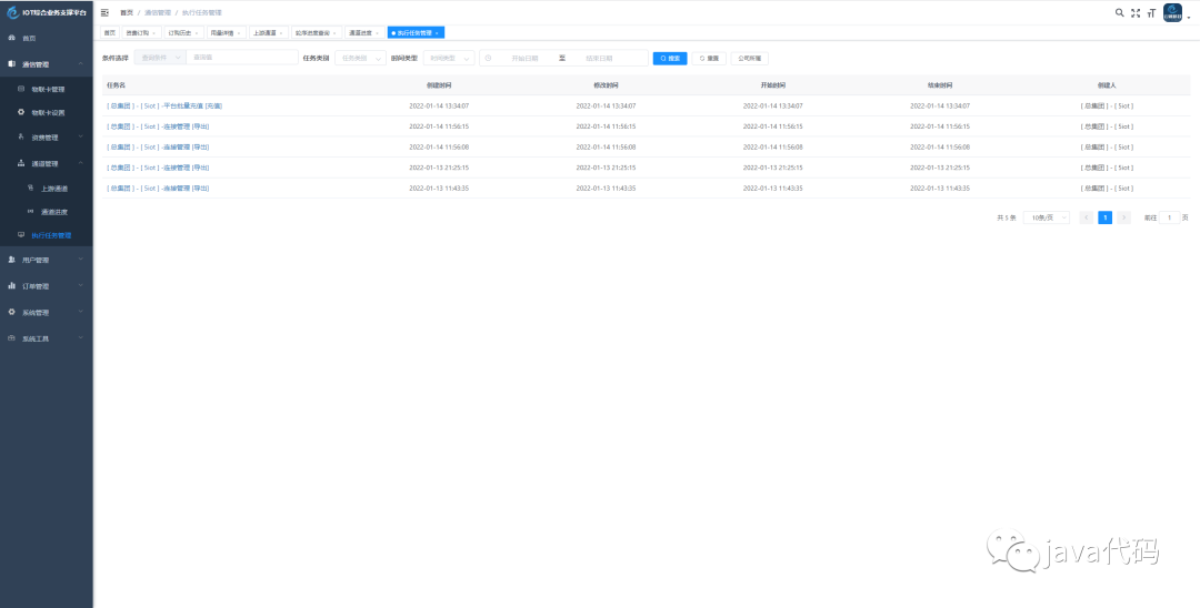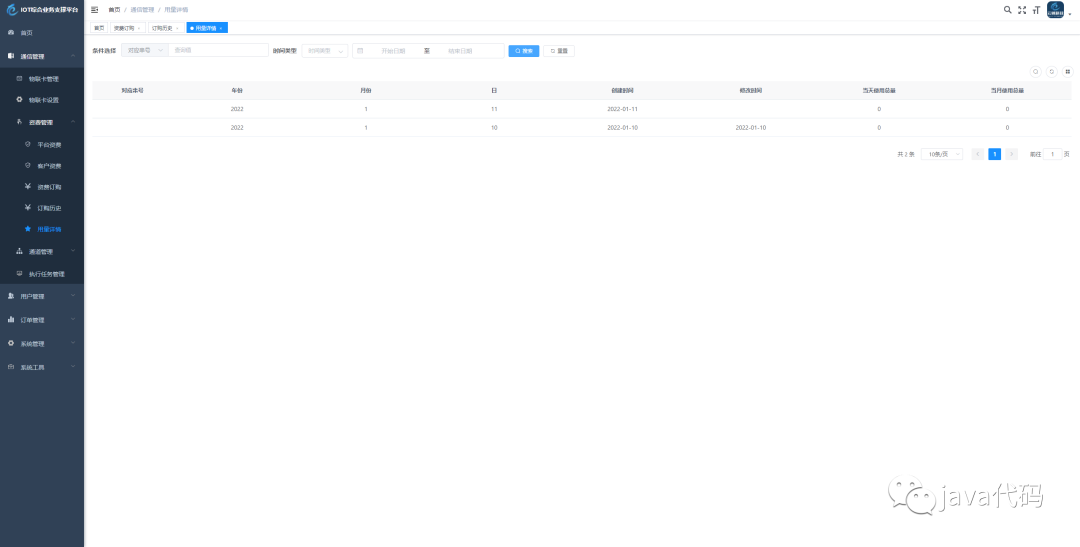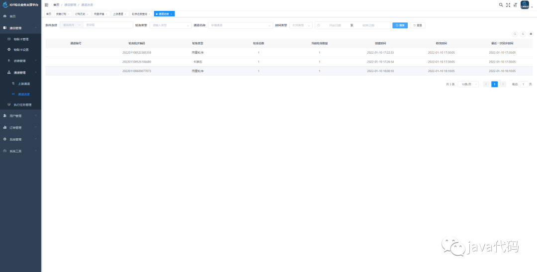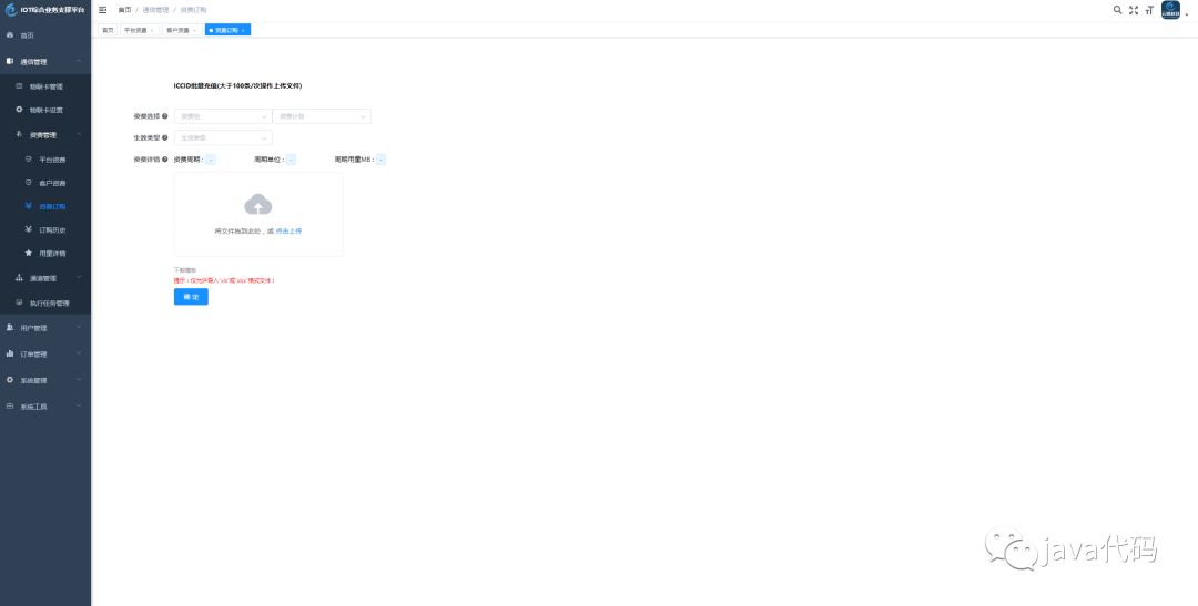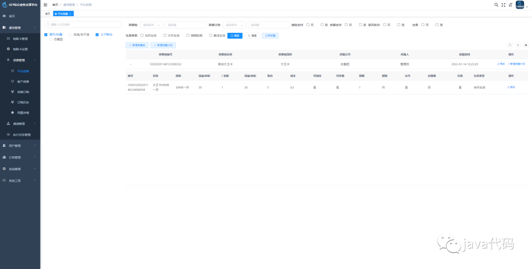 通信管理:主要用于所有物联卡的综合信息查询,同时提供不涉及资费产品订购的终端和物联卡的功能配置管理。