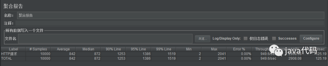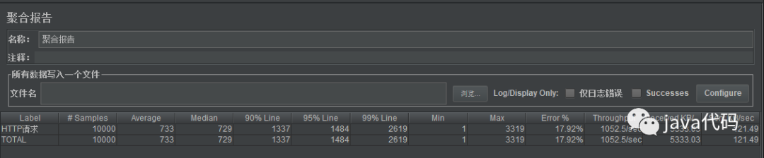 对于上图的两个测试,我们比较关注的是聚合报告里的 ThoughPut 的值,其值可以作为吞吐量的一个较好估计。