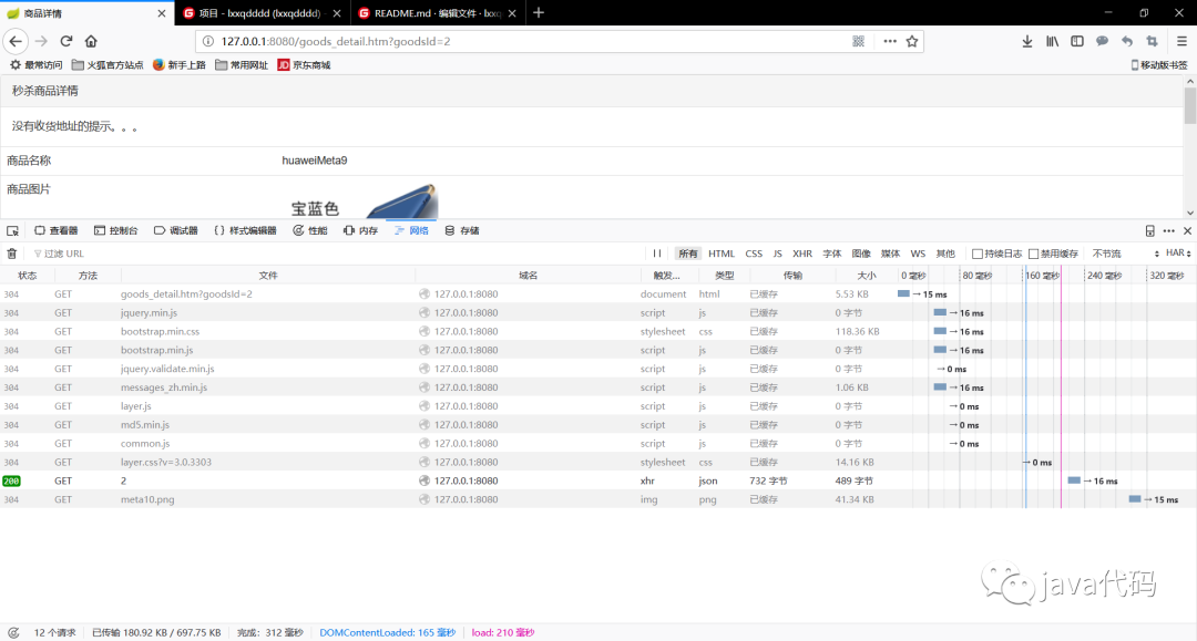 上述的两种缓存,都是利用redis缓存服务器来实现的,虽然可以降低对数据库和服务器的压力,但是,redis服务器的容量和处理能力也是有限的,所以我们可以考虑将页面模板直接缓存到用户的浏览器,那么每次请求用户只需要请求用于渲染的对象即可,这不仅仅减轻了redis服务器的压力,同时也减少了带宽的消耗,此即为页面静态化。在本项目中,主要实现的是商品详情、订单详情页面、秒杀页面的静态化,主要方法是利用ajax的异步加载,请求渲染需要的对象,并且通过配置 ####### spring.resources的相关参数来告诉浏览器是否缓存,缓存有效时间等等。