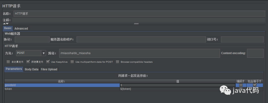 对于接口测试,我实现准备了1000个user和cookie,具体脚本见./java/util/下代码,在Jmeter中使用参数方法可自行百度,如图: