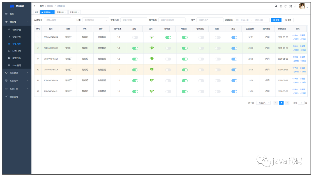 相关技术:Spring boot、MyBatis、Spring Security、Jwt、Mysql、Redis、Mongodb、Mqtt等