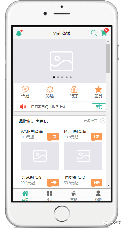 ├── mall-portal -- 前台商城系统接口└── mall-demo -- 框架搭建时的测试代码