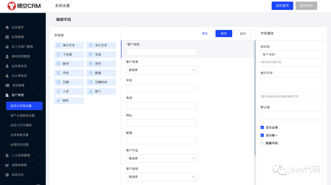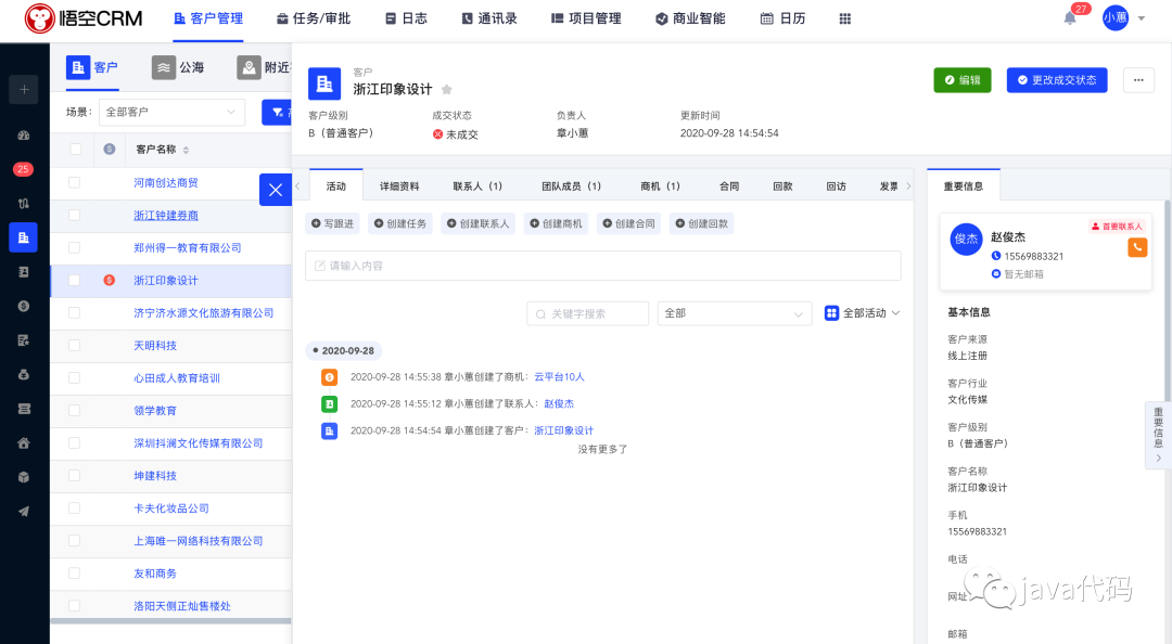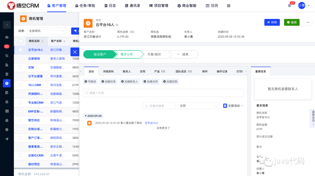 商机管理:支持设置多个商机,商机阶段自定义配置