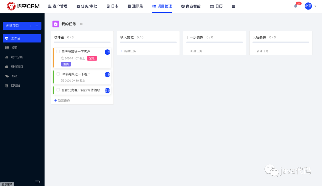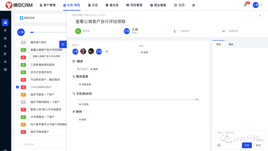- oa模块的任务依赖于work模块,其余一些关联业务功能依赖于crm模块,examine模块