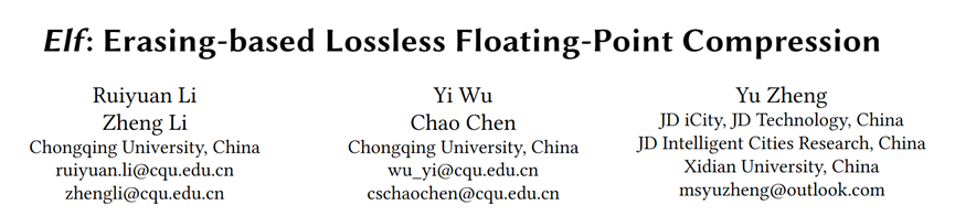 大量浮点时间序列数据正以前所未有的高速率生成。一种高效、紧凑、无损的时间序列数据压缩方法对海量数据的应用场景至关重要。现有的大多数浮点无损压缩方法是基于异或操作,但它们没有充分利用尾随零,这通常会导致压缩率不尽如人意。本次为大家带来重庆大学START团队在数据库领域顶级会议VLDB 2023最新收录的论文《Elf: Erasing-based Lossless Floating-Point Compression》。