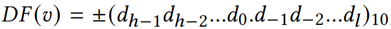 ,小数位数𝐷𝑃(𝑣) = |𝑙|;dn-1是第一位不等于0的,则𝑆𝑃(𝑣) = 𝑛−1称为十进制有效值起始位置;十进制有效值位数𝐷𝑆(𝑣) = 𝑛−𝑙 = 𝑆𝑃(𝑣)+1−𝑙。例如𝐷𝑃 (3.14) = 2, 𝐷𝑆 (3.14) = 3, 𝑆𝑃 (3.14) = 0; 𝐷𝑃 (−0.0314) = 4, 𝐷𝑆 (−0.0314) = 3, 𝑆𝑃 (−0.0314) = −2; 𝐷𝑃 (314.0) = 1, 𝐷𝑆 (314.0) = 4, 𝑆𝑃 (314.0) = 2.