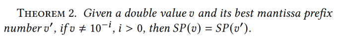 因此,通过擦除双精度值𝑣的底层格式m-g(α)之后的数,可以快速获得最优尾数前缀𝑣’。
