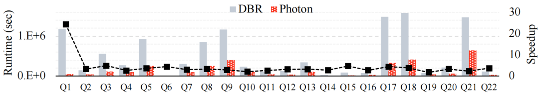 图3 Photon与一般DBR的TPC-H基准测试表现对比