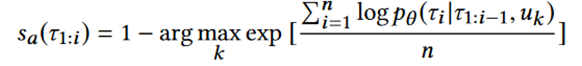 在在线设置中,给定先前的轨迹观测值 τ1:i ,下一个进入的轨迹观测值 sa (τ1:i+1) 的异常分数可以基于先前的轨迹 τ1:i 更新为: